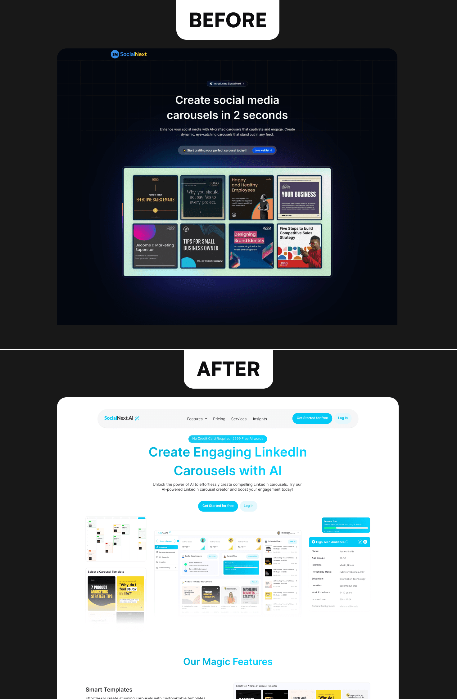 One of the main challenges was designing for non-designers who often found carousel creation overwhelming. Balancing powerful AI features with a simple user flow required careful consideration. Another hurdle was feature prioritization,deciding what to include in the MVP without overloading users or delaying the timeline.