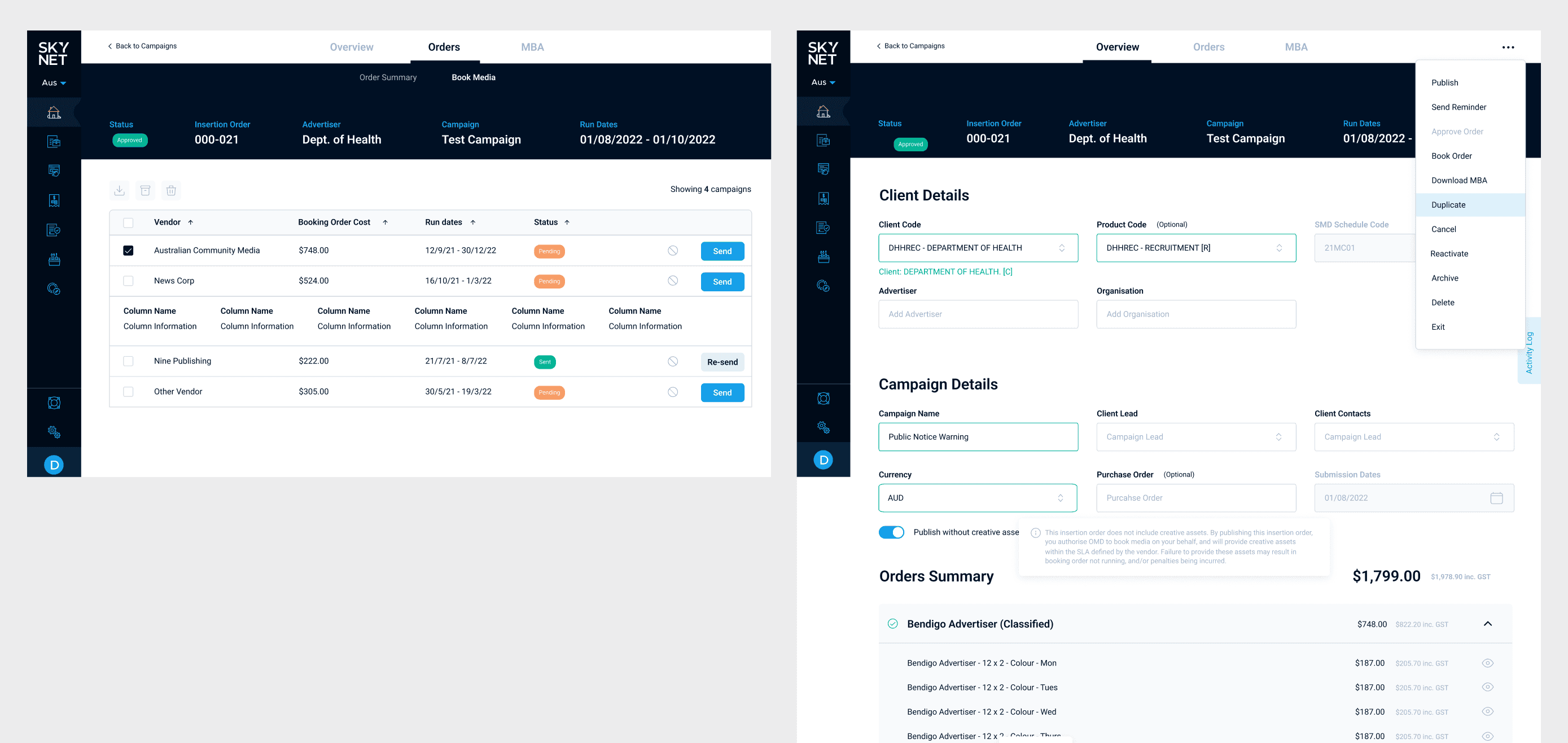 The Skynet redesign, a product of Omnicom Media Group, focused on streamlining digital marketing workflows by introducing new features and a cohesive design system—enhancing usability for both internal teams and clients.